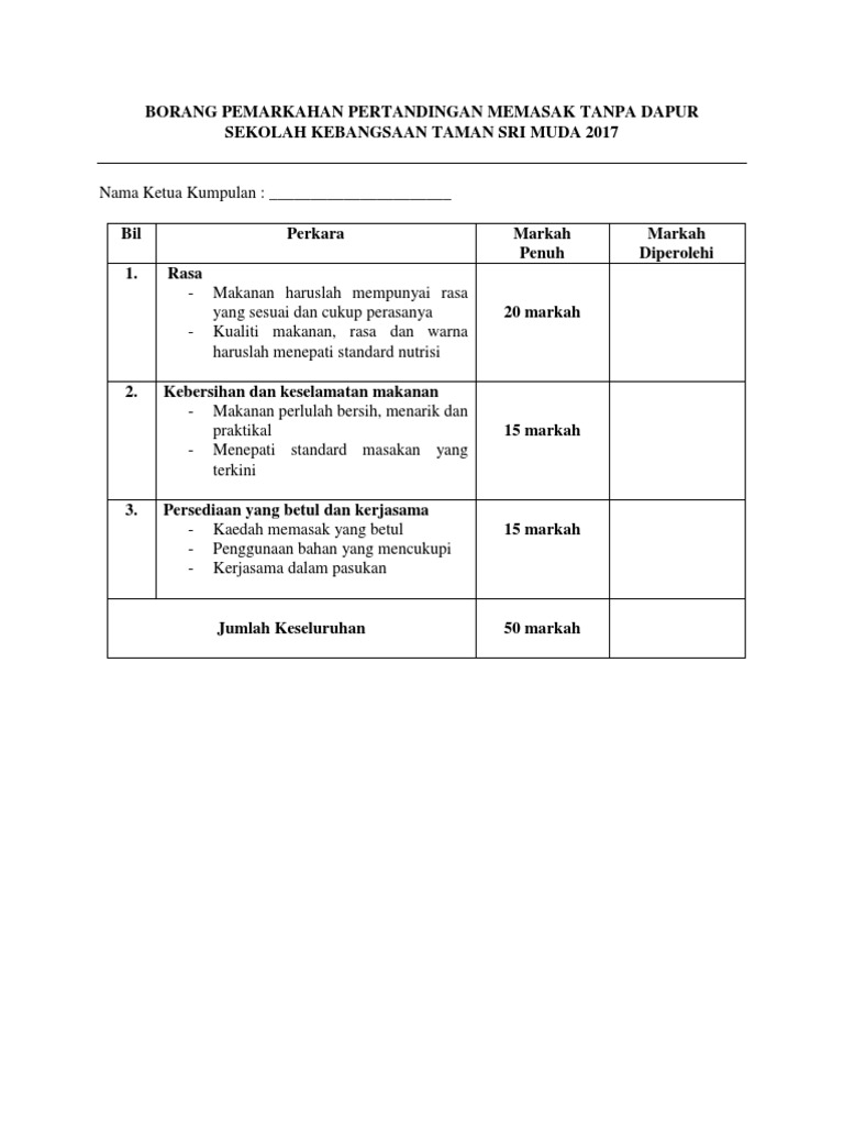 Borang Penilaian Masakan Tanpa Dapur Pdf